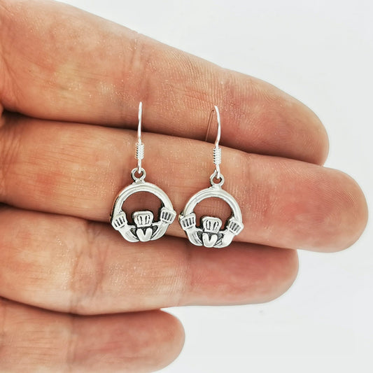 Large Claddagh Earrings In Sterling Silver Or Antique Bronze