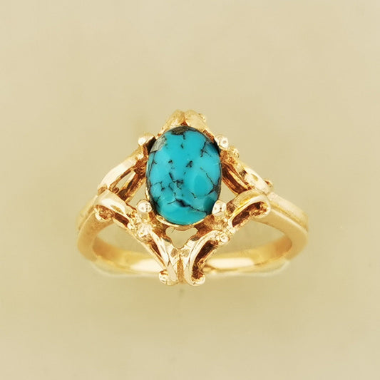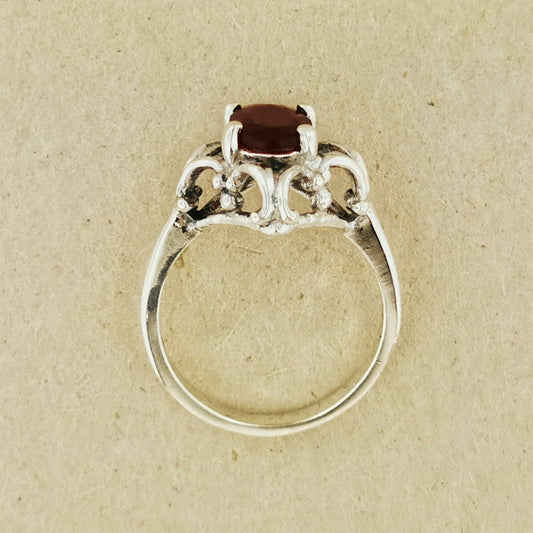 Bague à volutes des années 1950 en argent sterling ou bronze antique avec pierre de naissance imitation