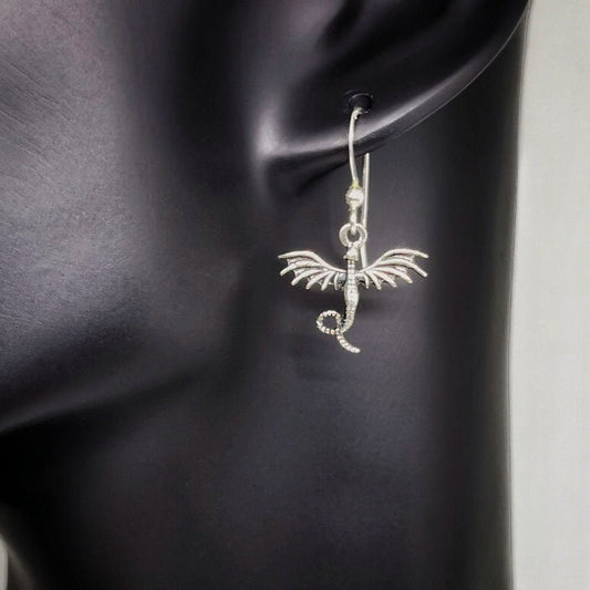 Boucles d'oreilles pendantes de dragon volant en argent sterling ou bronze