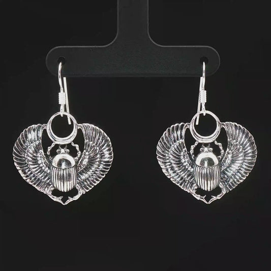 Boucles d'oreilles scarabées égyptiens en argent sterling ou bronze antique
