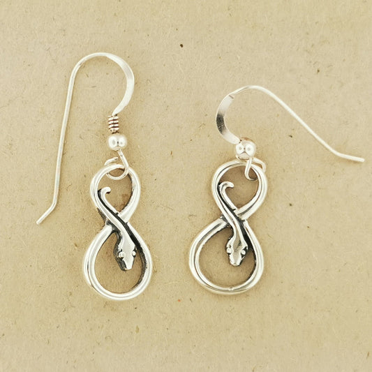Boucles d’oreilles à breloque serpent enroulé en argent sterling ou bronze antique