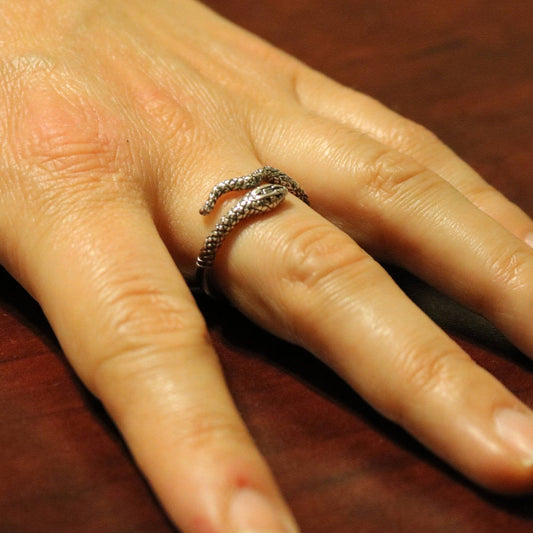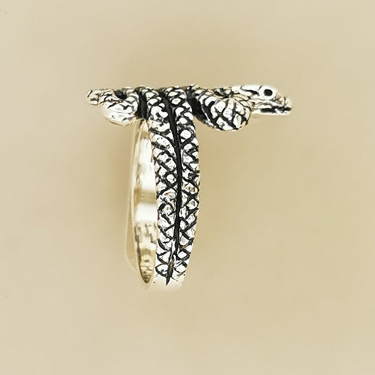 Bague serpent enroulé ajustable en argent sterling ou bronze antique