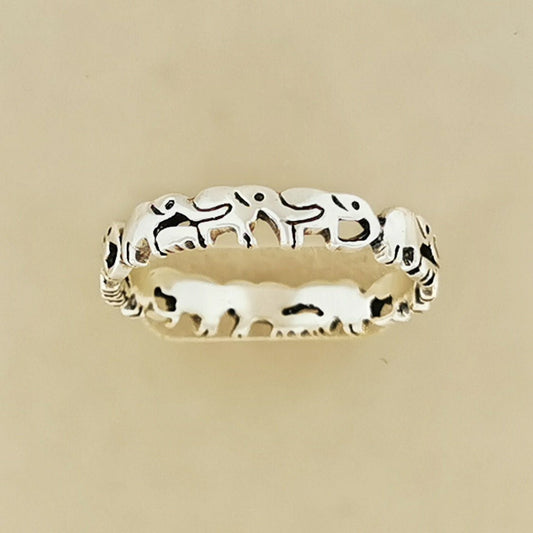 Bande d'éléphant paradant en argent sterling ou bronze antique
