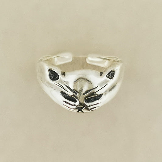 Anneau de lion classique de style vintage des années 1950 en argent sterling ou bronze antique