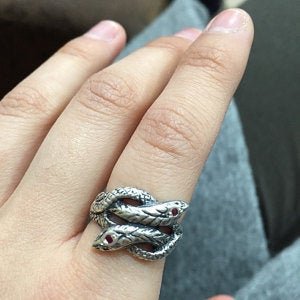 Bague serpents doubles enroulés avec pierres précieuses en argent sterling