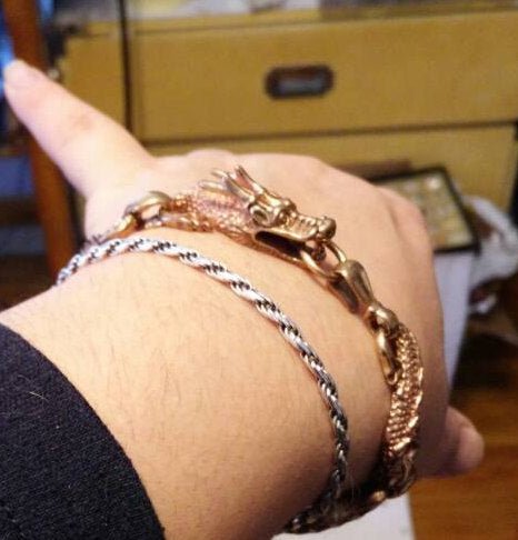 Grand bracelet dragon asiatique en argent sterling ou bronze antique réalisé sur commande