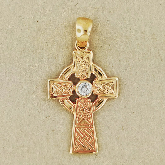 Pendentif croix celtique moyenne avec pierre précieuse en argent sterling ou bronze antique
