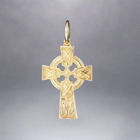 Une collection de pendentifs de style celtique, y compris des nœuds celtiques, des croix et des pendentifs Claddagh.