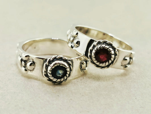 Bagues assorties Howl et Sophie en argent sterling avec pierres de naissance cabochon