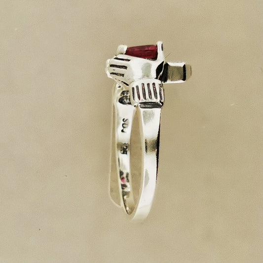 Bague Claddagh en argent sterling avec coeur rubis Chatham