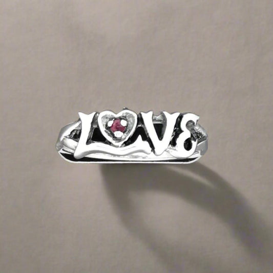 Bague d'amour en argent sterling avec cœur en pierres précieuses
