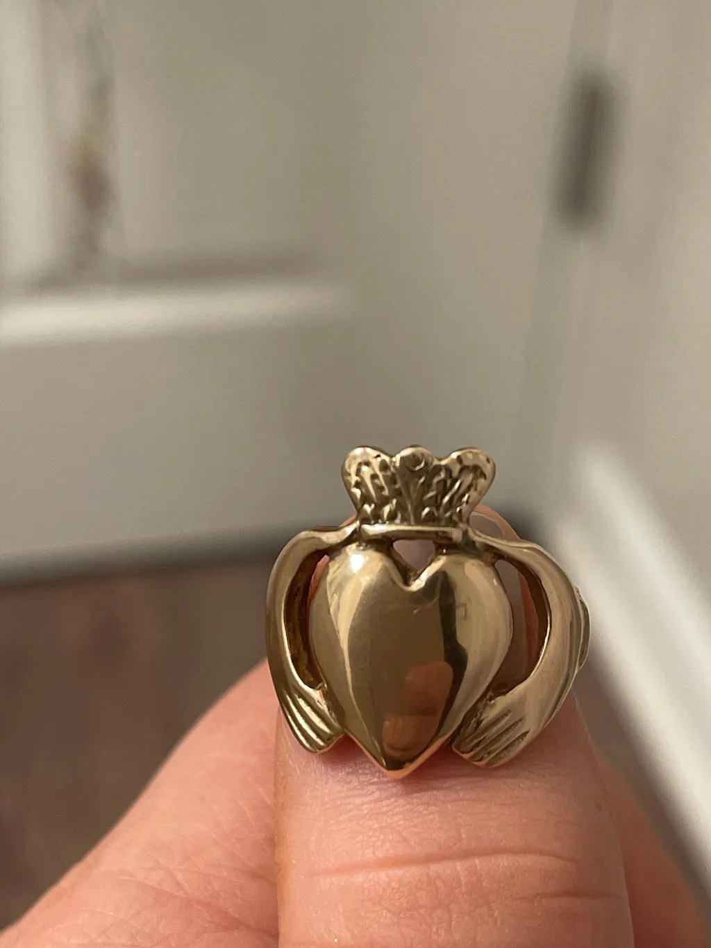 Il s'agit d'une grande bague de Claddagh pour hommes faite à la main avec présence et disponible en argent sterling .925 et en bronze antique ! Croyez-le ou non, cette bague a été conçue pour les hommes, mais elle semble aussi être populaire auprès des femmes ! La bague de Claddagh (irlandais : fáinne Chladaigh) est une bague irlandaise traditionnelle qui représente l'amour, la loyauté et l'amitié (les mains représentent l'amitié ; le cœur représente l'amour ; et la couronne représente la fidélité).
