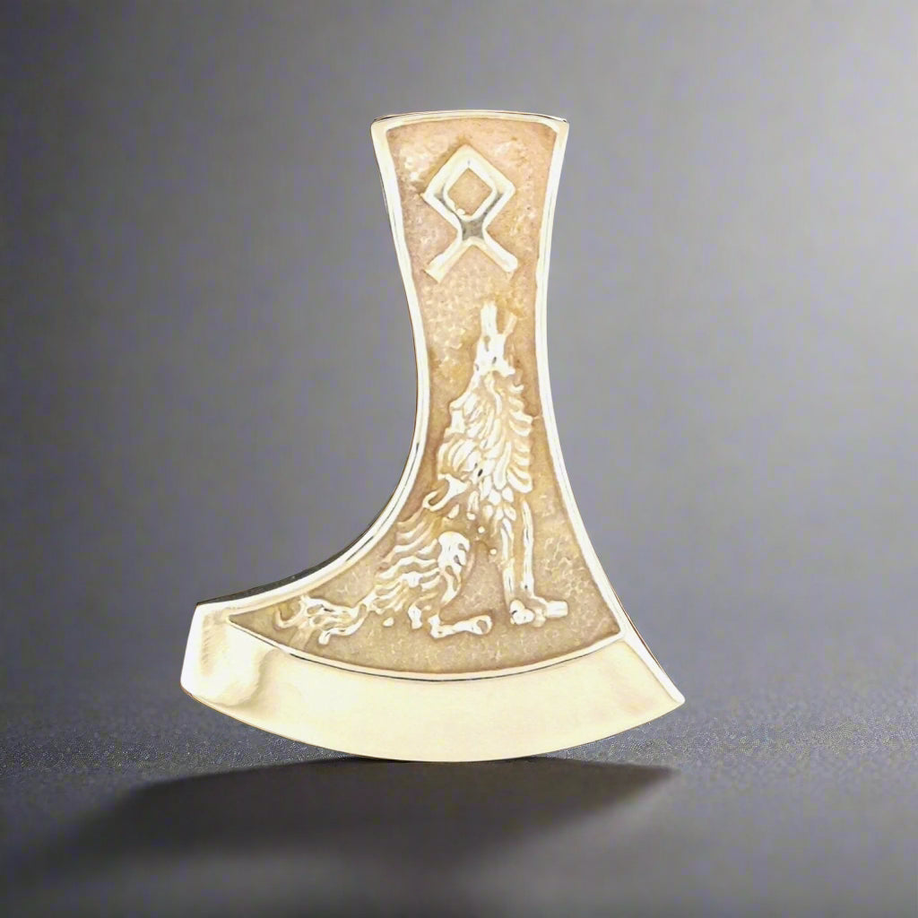 Il s'agit d'un pendentif tête de hache viking fait à la main que j'ai fabriqué sur la base de celui que j'ai trouvé en étain. Ceci est disponible en argent sterling .925 ou en bronze antique. Il mesure 3,75 cm de haut et 2,8 cm de large et l'ouverture pour une chaîne mesure 6 mm de long et 4 mm de large. Un côté présente un corbeau, l'animal associé à Odin, le dieu principal de la sagesse, avec la rune Algiz, la rune de protection. L'autre côté présente un loup hurlant, l'animal associé à Forseti, un dieu de la justice et de la loi, et la rune Othala, la rune de la maison.