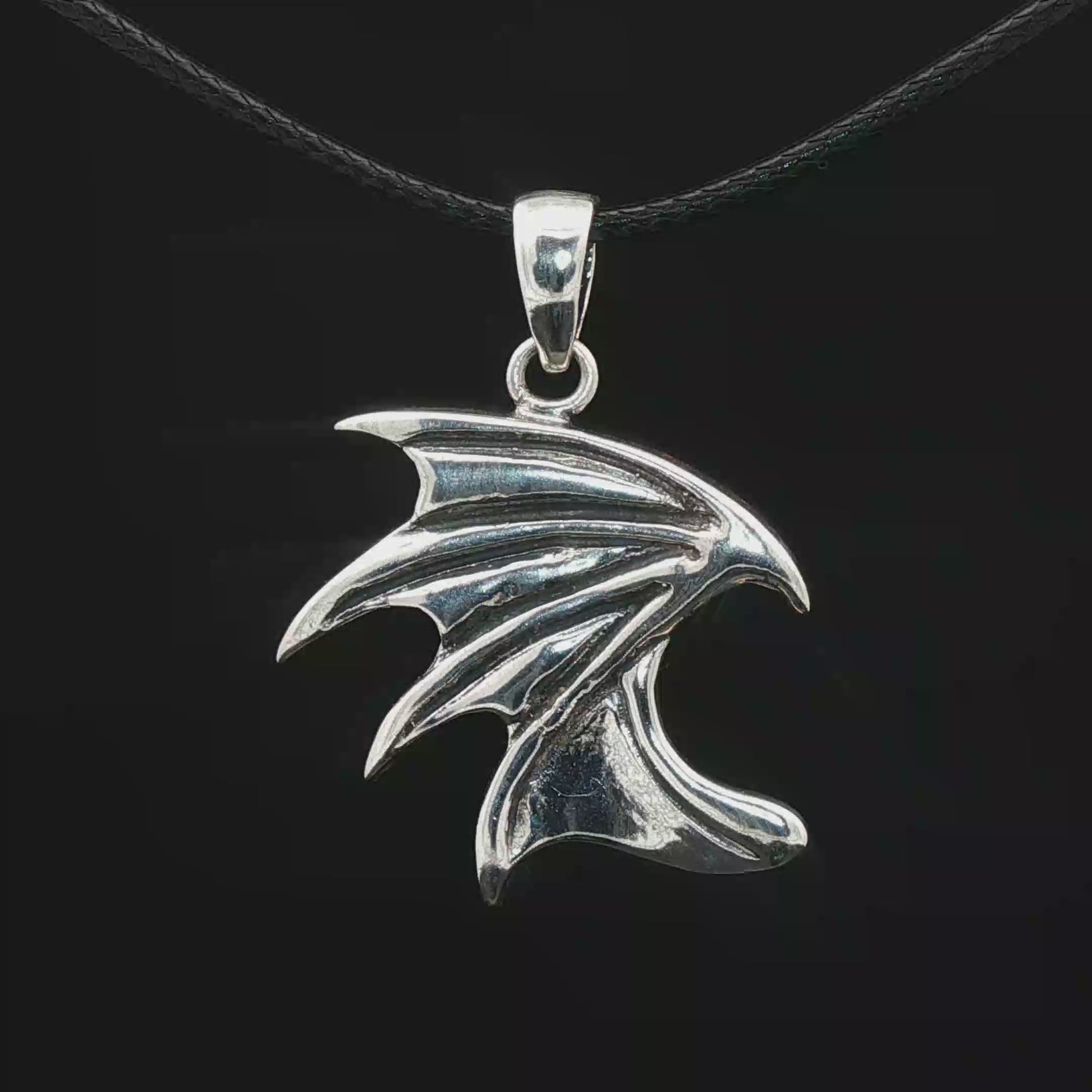 This pendant captures the graceful curve and intricate details of a dragon’s wing, expertly cast in .925 sterling silver. Its textured design catches the light beautifully, giving it a subtle yet striking presence.