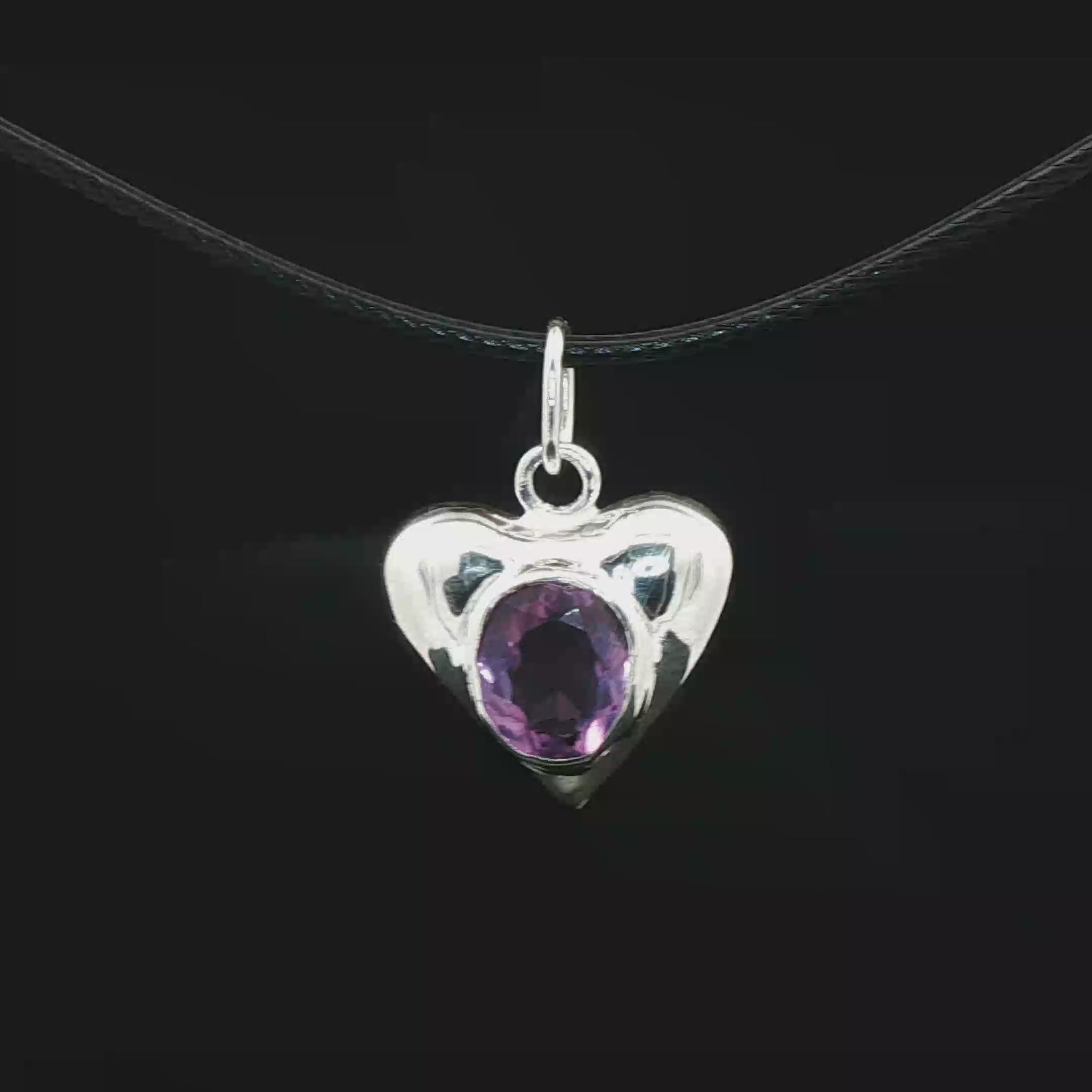Heart Pendant with 10x8mm Amethyst in Sterling Silver