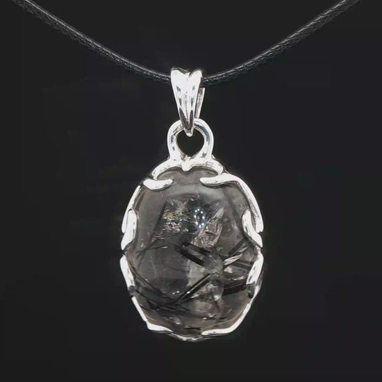 This stunning pendant features natural tourmilated quartz—those striking black inclusions suspended inside clear crystal—giving it an effortless, modern edge. Set in solid sterling silver, it has the feel of a meaningful medallion, the kind you wear daily for both style and grounding energy.
